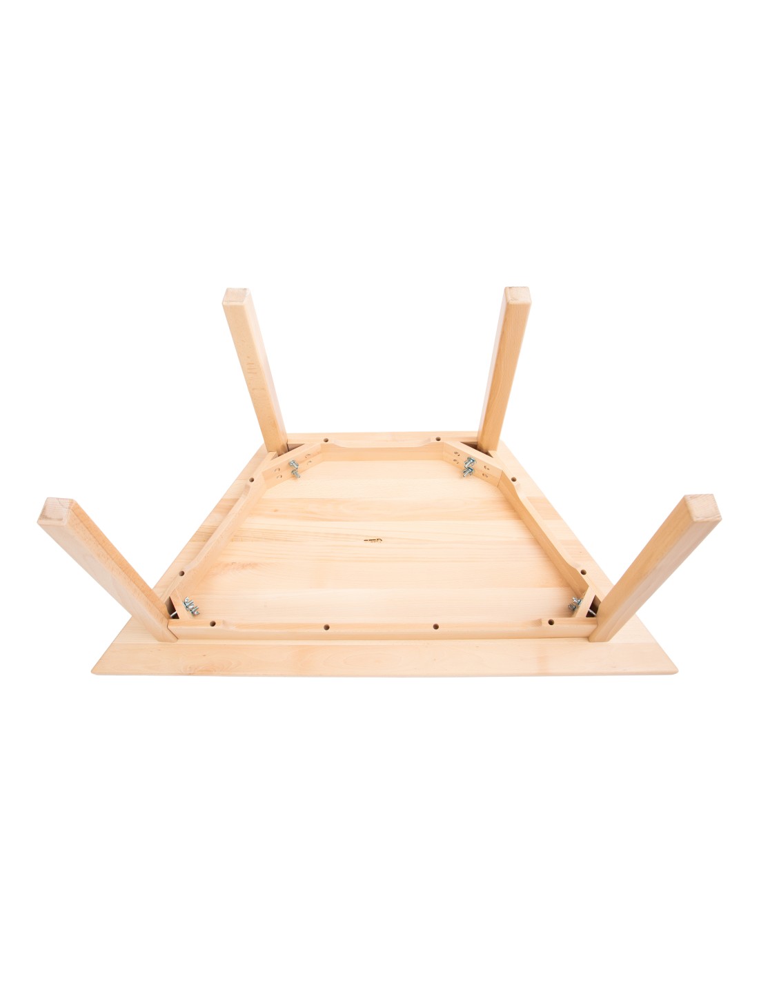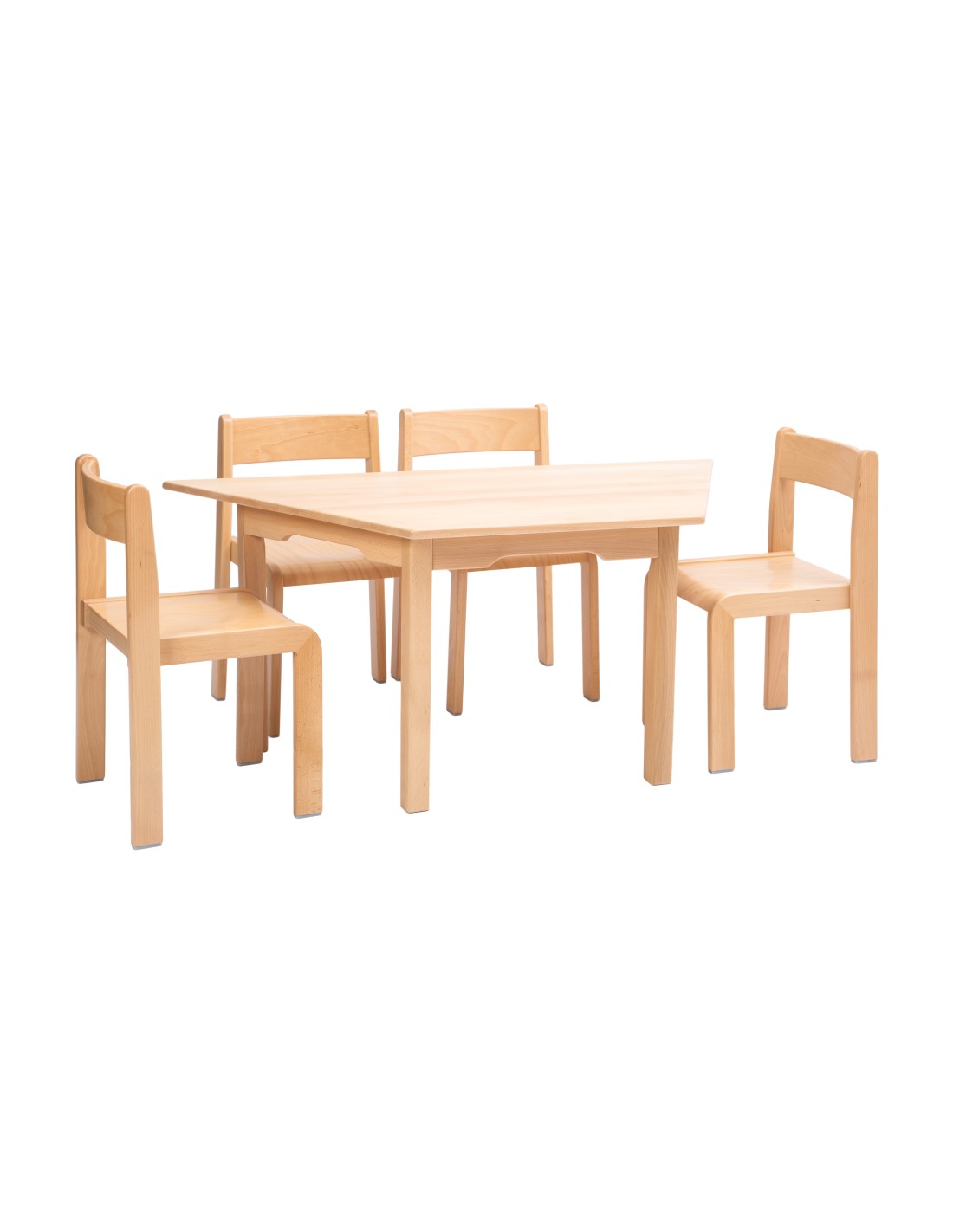 Der Trapezförmiger Kindergartentisch mit einer großzügigen Tischplatte aus massivem Buchenholz von 120 x 60 cm, bietet den perfekten Raum für kreative Aktivitäten und gemeinsames Lernen in einer optimalen Umgebung.