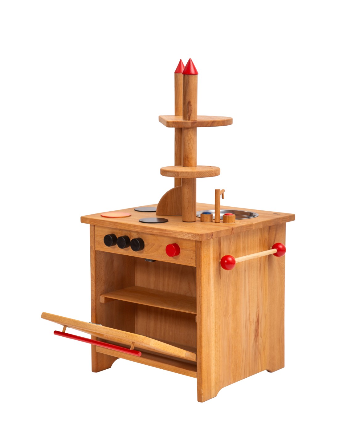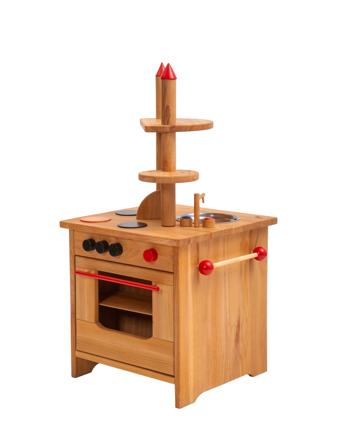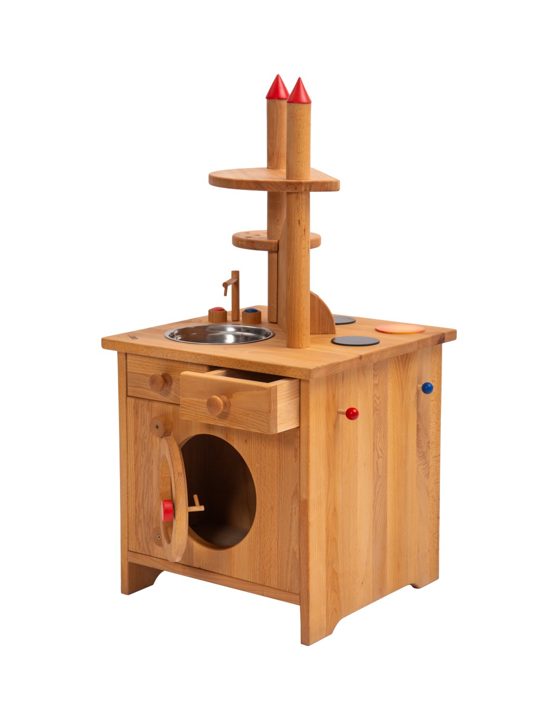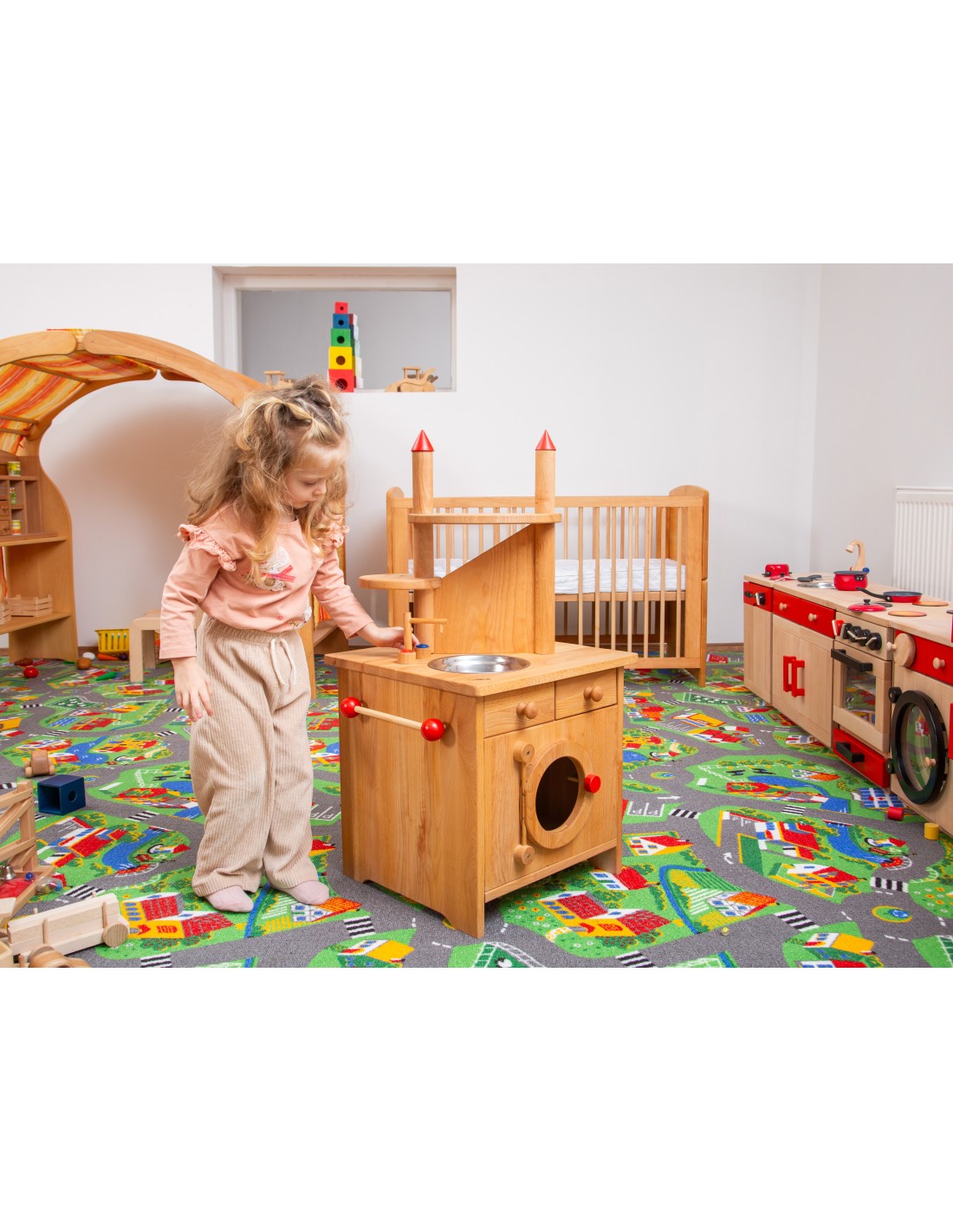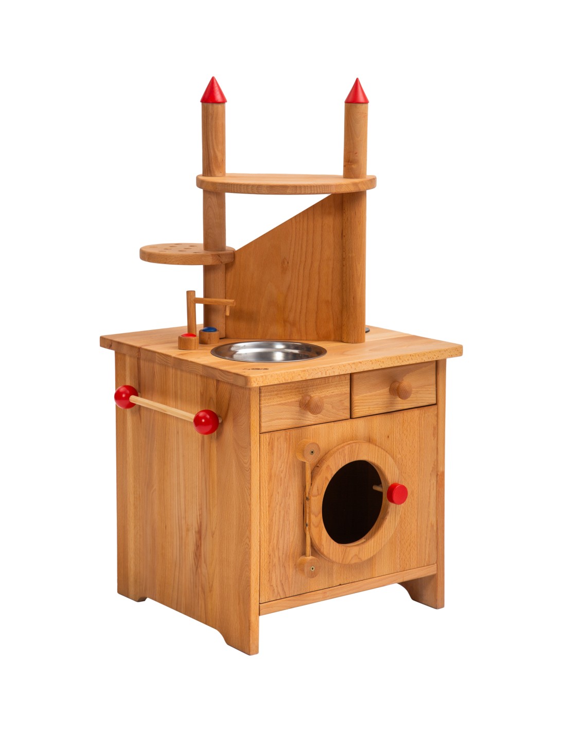 The Little Household Centre is the ideal toy for children who want to imitate the activities of grown-ups. It encourages children to explore real-life gestures, such as cooking and washing dishes, in a play experience that stimulates imagination, logical thinking, and learning - crucial aspects of children's early development. Made from solid beech wood and varnished with eco-friendly water-based paints, this center is completely eco-friendly. The natural surfaces are treated with linseed oil and the joints are made with formaldehyde-free adhesives, ensuring a safe and healthy play environment. Recommended for children aged 3 to 12, this small domestic center is an exciting, educational, and perfectly safe play space for their creativity. *It is recommended to wipe the product with a soft, clean cloth soaked in furniture solution. Chemical or abrasive agents, alcohol, gasoline, gas, spirit should not be used for cleaning and maintenance. Hard objects should not be used.